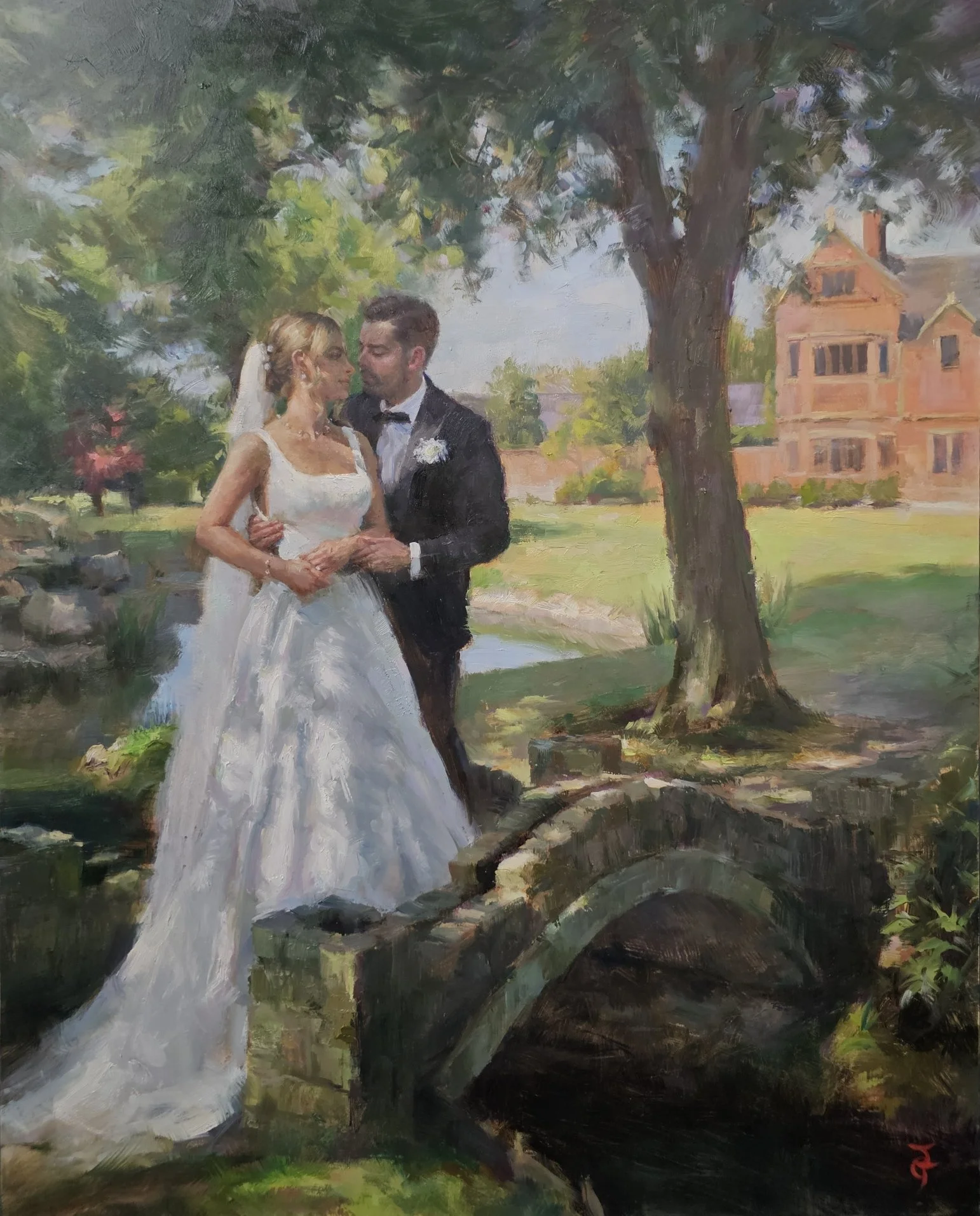 Alternatively, I can grab the two of you for a quick photoshoot after you’ve tied the knot, where you can have as much (or as little) creative input you desire. I will then show you the shots taken and together we can agree on a reference shot or shots. Afterwards I will then either begin the painting in whatever location works best and paint into the evening.
